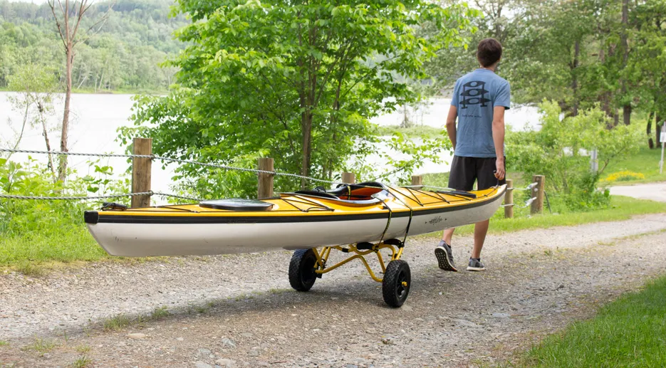 You can transport that enormous kayak with the assistance of a set of wheels that are smooth and heavy-duty, and you can make them yourself in about an hour's work. You may save your back and roughly thirty bucks by constructing your DIY kayak dolly cart, saving you from carrying your kayak. You can do this by following the instructions found online.