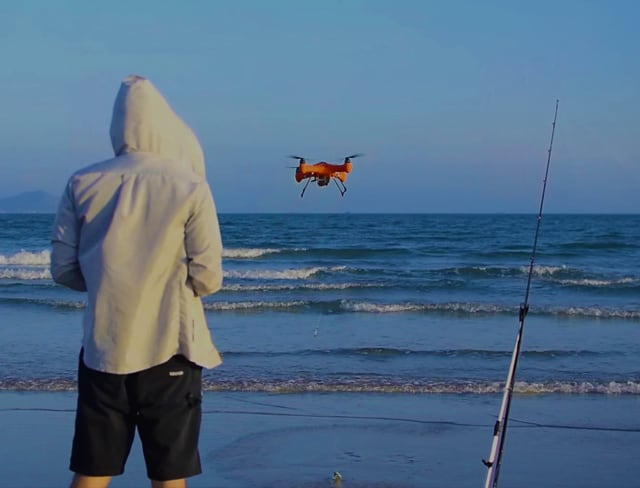 A waterproof drone with an IP67 rating that was designed for use in the water? You bet. The SplashDrone 4 (especially when paired with the PL1-S bait release mechanism) is a powerful option, even though it is a little pricey. It weighs more than 2 kilograms and can carry a load of approximately the same again (about 25 pieces of bait on a line). The drone's orange shell can float on water and take off from it; if it ever finds itself the wrong side up, it can even turn itself upright, which is incredible to see. NaviFly (you will need your phone attached to the top of the remote control) makes it possible to access all the drone perks that a high-end consumer pilot would expect, such as a live view in high resolution and intelligent follow. However, extras like the bait release get more traditional feeling buttons and switches on the IP66 waterproof remote control. Because SwellPro supports its SplashDrone line of drones with many payload release mechanisms for "strolling," anglers don't need a boat to fish up to 1.6 kilometers out from the coast when using one of these drones.