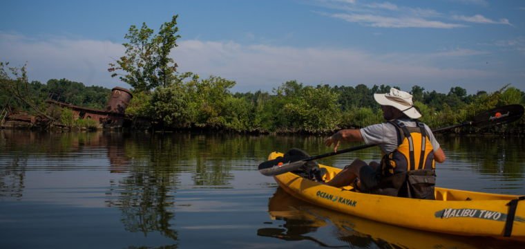 The Paddle: Belle Isle State Park is a serene location that puts visitors on "island time" as soon as they step foot inside the park's warm and inviting boundaries. Canoes and kayaks are available at the park, which is situated on the banks of the lower tidal Rappahannock River, and the rates are pretty affordable. Canoeists and kayakers can launch their craft from a secluded area on Mulberry Creek, then make their way to the Rappahannock River. Stop at Brewers Point, which is part of the state park, and you can spend the night camping at either a hike-in or a boat-in site. Paddle along the river's borders, where you'll find wildlife and woodlands and marshes to explore. It is approximately three miles one way to get to the park boat ramp on Deep Creek, making the total distance traveled on the trip six miles if no other inlets, such as Porpoise Creek, are explored.