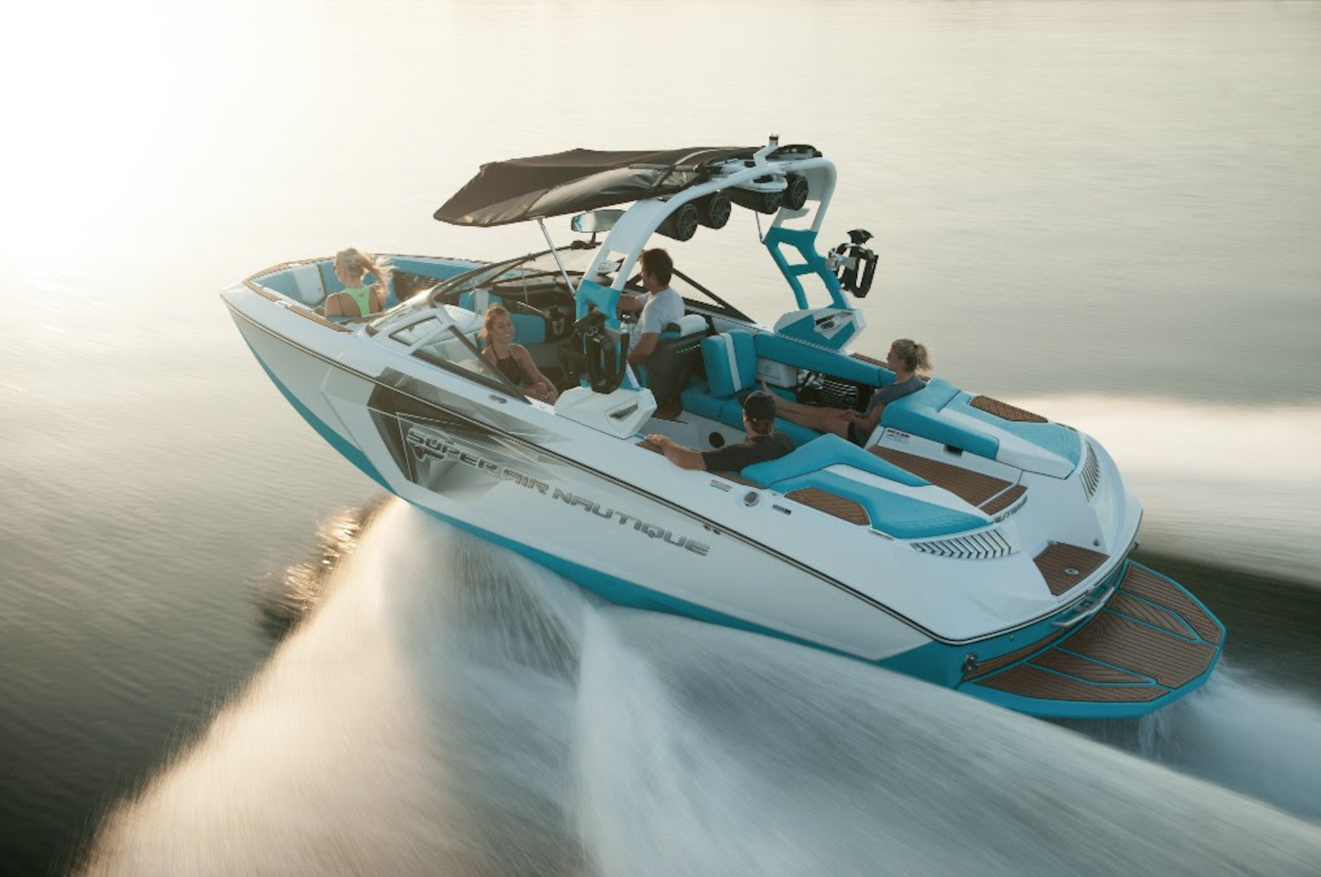 Its wet sounds audio system blasts the noises made when wake surfing through the device's speakers. It results in an immersive experience for whoever is seated behind the wheel or within the vessel's deep-v hull.